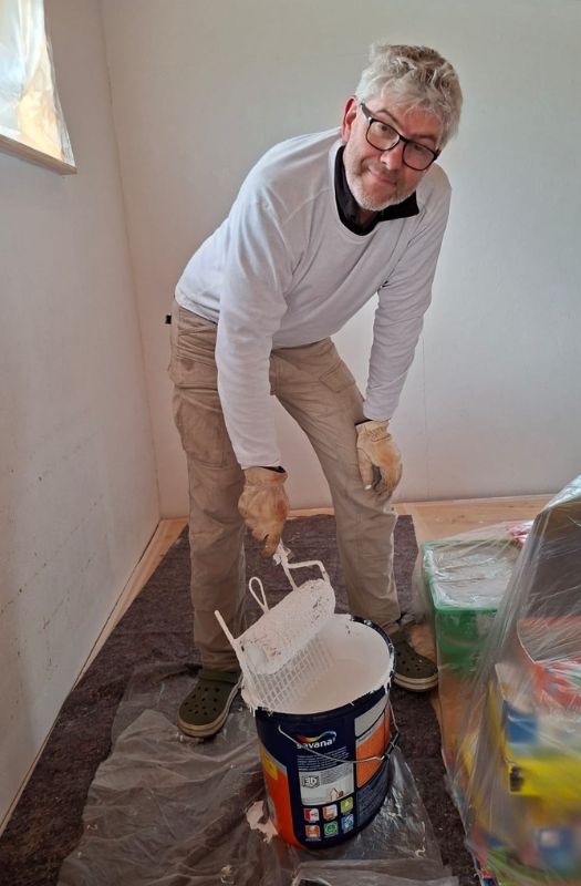 Die gespendet Gastro Spülmaschine ist angeschlossen, Das Holzhaus innen neu gestrichen, Sockelleisten im Kinga-Haus montiert, und, und, und…