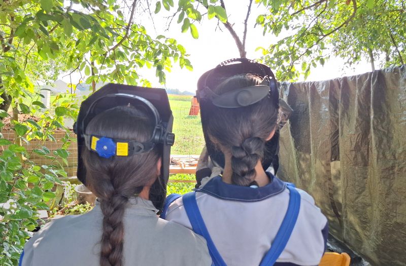 Zu unserer großen Freude haben sich auch die Mädchen zum Schweißen überreden lassen. Und, sie waren wesentlich geduldiger als die Jungs.